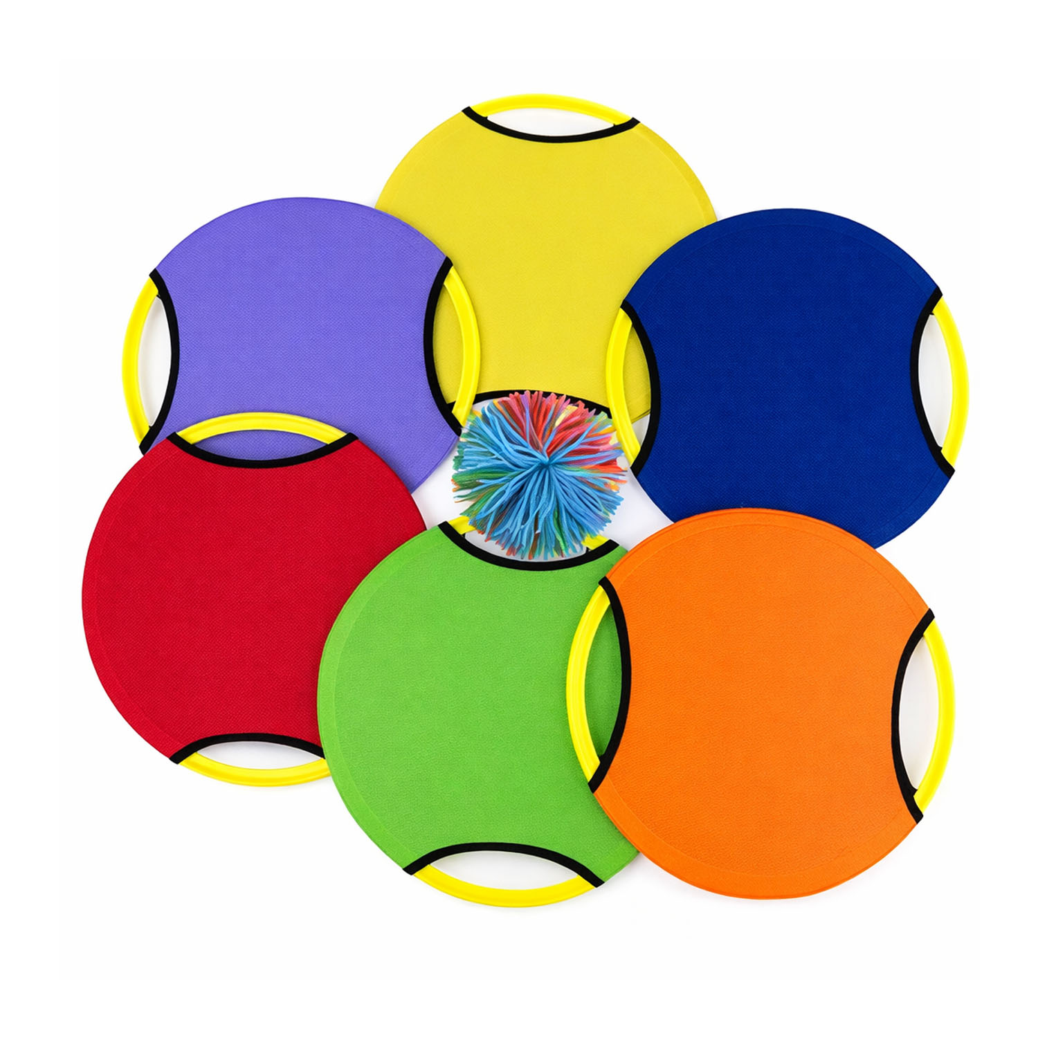 Implemento recreativo diseñado para actividades de lanzamiento y recepción, favoreciendo el desarrollo de la coordinación óculo-manual, la motricidad gruesa y la precisión. Permite realizar dinámicas lúdicas que estimulan el movimiento, la concentración y la interacción.