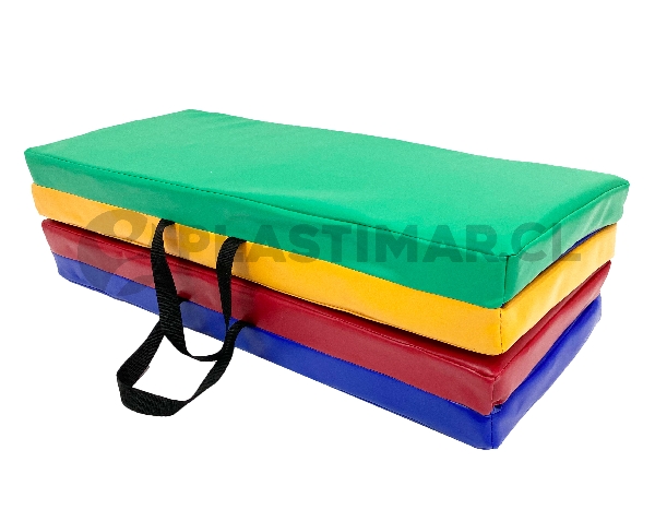 Este material contribuye al desarrollo de la motricidad gruesa, la coordinación y el equilibrio, siendo adecuado para actividades guiadas o de juego libre. Su diseño con pliegues facilita el traslado y el bodegaje, permitiendo optimizar el uso del espacio en salas, escuelas, centros deportivos y gimnasios de menor tamaño.