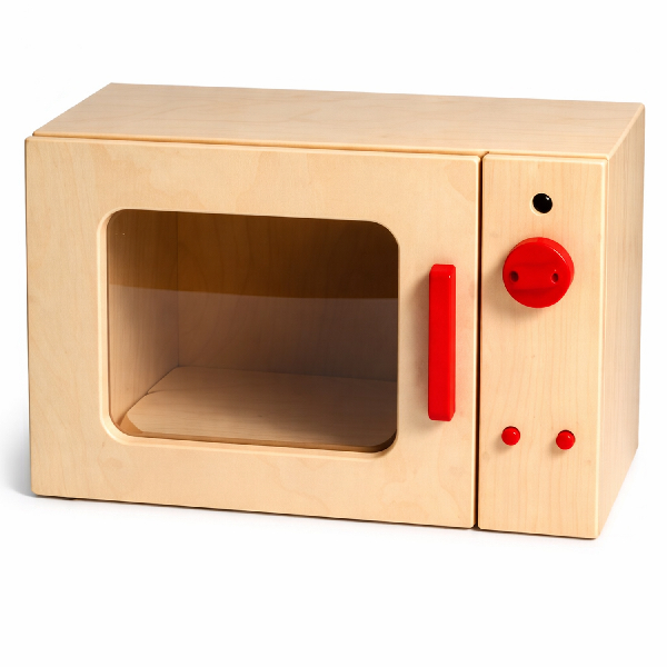Microondas infantil fabricado en madera resistente con cantos redondeados para mayor seguridad. Ideal para estimular el juego de roles, la dramatización y la imaginación, permitiendo recrear situaciones cotidianas de forma entretenida y educativa.