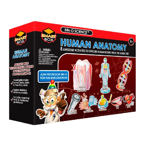 El set incorpora un torso transparente que permite visualizar los órganos internos, un modelo de ADN, un modelo de diente y una simulación del funcionamiento de los pulmones, entre otras actividades. Es ideal para el aprendizaje de ciencias naturales, favoreciendo la curiosidad, la observación y el uso del lenguaje científico.