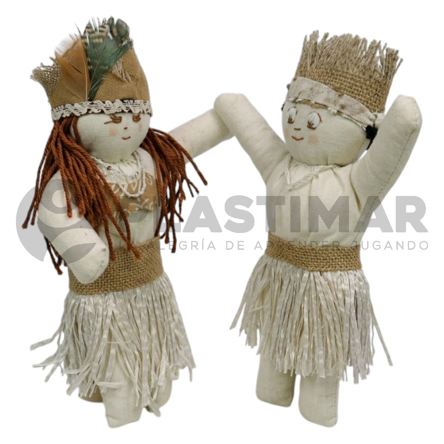 Set de títeres de pueblos originarios compuesto por una pareja pascuense, con vestimenta acorde a la etnia. Juguetes textiles con fines educacionales y terapéuticos que favorecen el aprendizaje sobre las raíces y costumbres de nuestro país, promoviendo el respeto por el género y la diversidad. Desarrollados en materiales suaves al tacto, lavables y seguros, con finas terminaciones y caritas pintadas a mano con pintura especial para género.