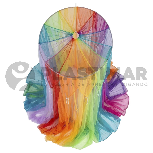 Estructura colgante en tela de varios colores diseñada para crear un cómodo rincón mágico. Invita a los niños, arrellanados sobre cojines, a motivarse por la lectura, expresarse de manera oral, escuchar y leer cuentos, fantasear y soñar.