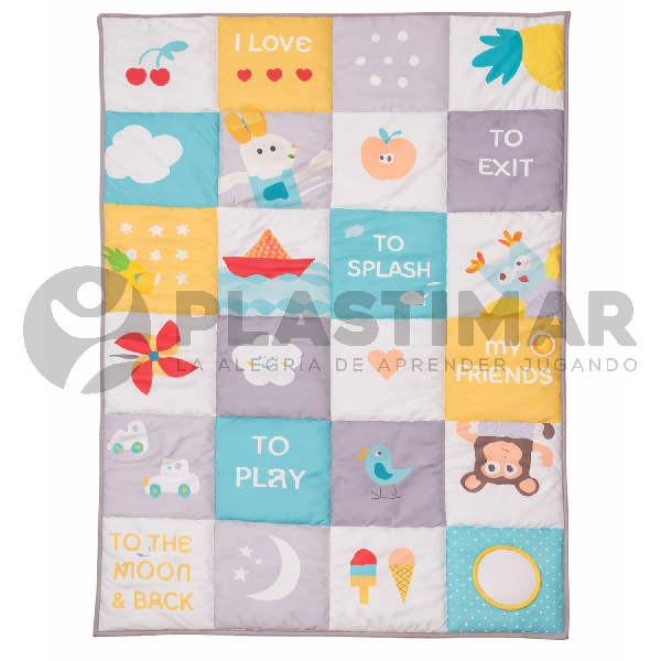 Alfombra de género con base acolchada, diseñada en diversos colores y diseños infantiles. Permite el desarrollo de la estimulación sensorial y motriz a través del juego, creando espacios seguros y acogedores para actividades en suelo.