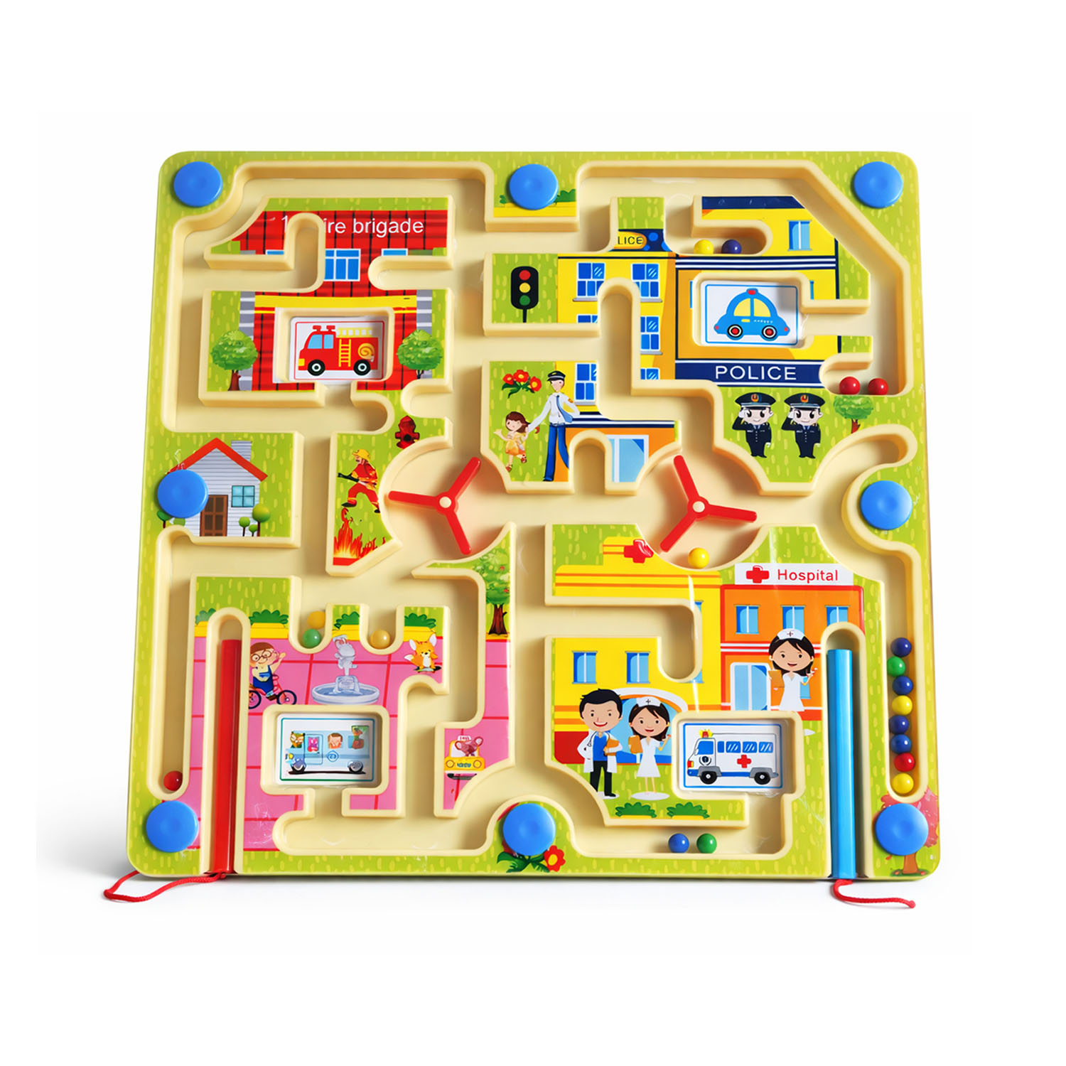 Recurso didáctico diseñado para el desarrollo de habilidades cognitivas y motoras mediante actividades lúdicas. Combina un tablero magnético con laberinto y un juego clásico de ludo, favoreciendo la coordinación óculo-manual, la destreza y el pensamiento lógico.