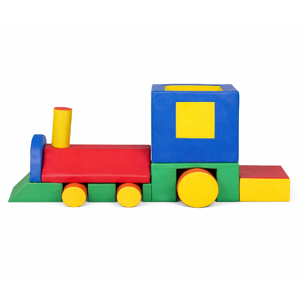 Set de juego compuesto por 13 figuras geométricas que, al unirse, forman un tren de juego. Las piezas se encuentran unidas mediante sistema de velcro, permitiendo múltiples configuraciones y favoreciendo el desarrollo de la coordinación, el equilibrio, la creatividad y el juego simbólico.