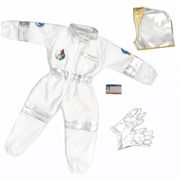 Disfraz de astronauta ideal para el juego de roles y la representación de personajes. Permite a niños y niñas desarrollar la creatividad, la imaginación y el lenguaje, además de expresar emociones y fortalecer la confianza, ayudando a superar miedos y timidez mediante el juego simbólico.