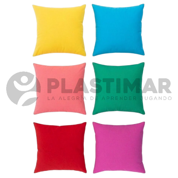 Set de 6 cojines en distintos colores, suaves y livianos. Ideales para espacios de lectura, descanso y juego infantil. Su diseño cómodo y seguro permite crear ambientes acogedores en salas, rincones de lectura y áreas recreativas.