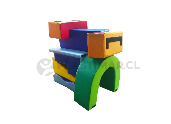 Este material es adecuado para contextos educativos y terapéuticos, ya que facilita actividades de juego guiado o libre, así como el abordaje de roles específicos en terapias más complejas. La variedad de módulos permite crear recorridos adaptables, promoviendo la interacción social, el control postural y la planificación motriz en un entorno seguro y contenido.