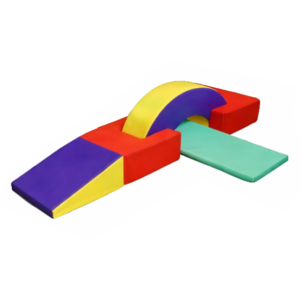 Módulo diseñado para permitir múltiples funciones y configuraciones, favoreciendo el reconocimiento del espacio, el desarrollo psicomotriz y la estimulación sensorial. Promueve la libertad y creatividad de movimientos, ampliando los objetivos físicos de enseñanza mediante diferentes formas de armado.