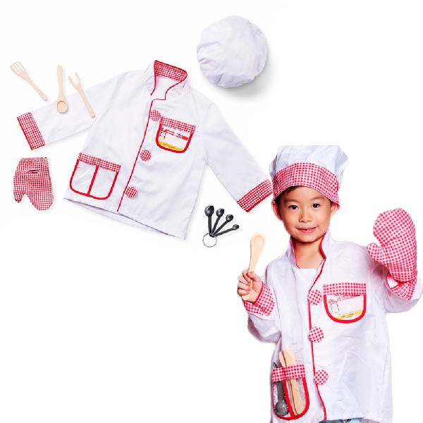 Set de 4 disfraces con llamativos accesorios. Incluye diferentes diseños de profesiones y oficios: doctor, piloto, veterinario y constructor. Fortalece la imaginación y el juego de roles. Presentación en bolsa de PVC. Medidas aprox. de cada uno: 56 x 40 cm.