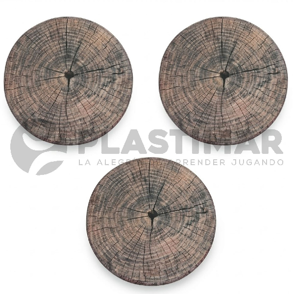 Set de 3 asientos con diseño de troncos de madera, ideales para utilizar como recurso en trabajos grupales, ludoteca y diversos espacios educativos. Permiten recrear el contacto con la naturaleza y materiales naturales, favoreciendo ambientes armónicos y experiencias lúdicas significativas.
