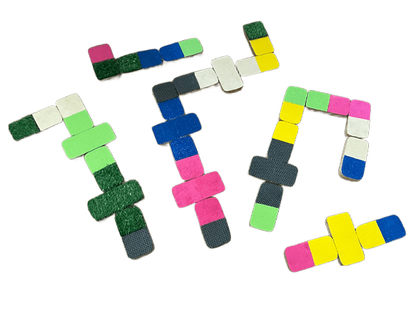 Dominó sensorial diseñado para favorecer la estimulación táctil y el desarrollo del lenguaje mediante la exploración de distintas texturas en lugar de números tradicionales. Su dinámica de juego promueve la discriminación sensorial, la memoria y la descripción verbal, estimulando la percepción táctil en contextos educativos y recreativos.