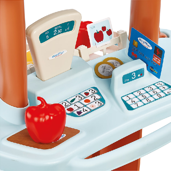 Este material promueve la coordinación motriz y la autonomía, ya que los niños manipulan productos, trasladan el carro de compras y ordenan los cajones, fortaleciendo habilidades prácticas y sociales. Es adecuado para espacios educativos y familiares, facilitando experiencias de aprendizaje activo mediante el juego de roles.