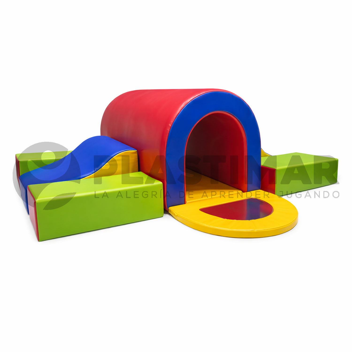 Este material es utilizado en contextos educativos y terapéuticos, apoyando procesos de estimulación temprana, especialmente en actividades de gateo, exploración motriz y adquisición de conceptos básicos. Asimismo, permite abordar objetivos específicos en intervenciones psicomotoras más complejas. Las piezas se unen entre sí mediante velcros, lo que favorece la estabilidad del conjunto y la adaptación a diferentes dinámicas de juego guiado o libre.