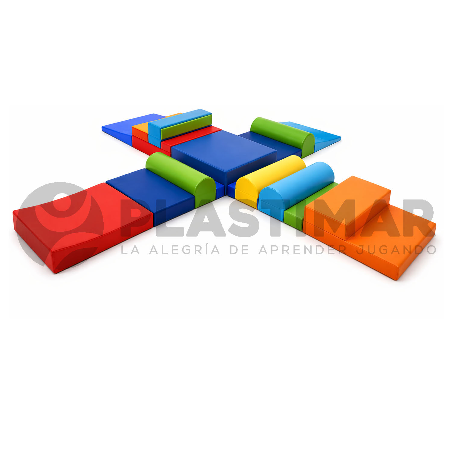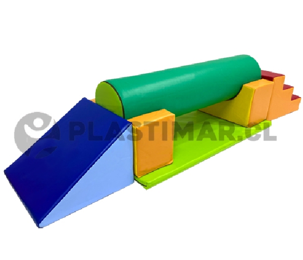 El Centro de Psicomotricidad Cala es un circuito modular diseñado para el trabajo integral de la motricidad gruesa, orientado al desarrollo del equilibrio corporal, la coordinación y la concentración. Su configuración permite proponer recorridos variados que favorecen la exploración del movimiento, el control postural y la adquisición de nociones espaciales en un entorno seguro y estructurado.