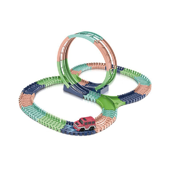 El set contiene 138 piezas plásticas para el armado de la pista de carrera.