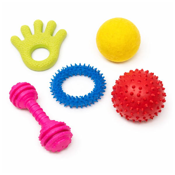 Recurso diseñado para ejercitar la motricidad y la actividad sensorial en las manos, favoreciendo el desarrollo de la motricidad fina, la exploración táctil y la coordinación. Sus diferentes formas, colores y texturas estimulan los sentidos y promueven la interacción en contextos educativos, terapéuticos y recreativos.
