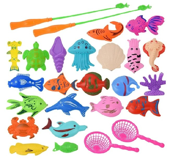Material didáctico diseñado para el desarrollo sensorial y la coordinación a través del juego interactivo. Permite realizar actividades de pesca utilizando cañas con anzuelo magnético o cazadores tipo colador, favoreciendo la precisión y el control del movimiento.