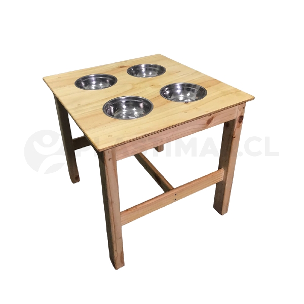 Materiales: Madera natural con terminaciones suaves y bordes redondeados; contenedores de acero inoxidable resistentes al uso con agua y otros materiales.