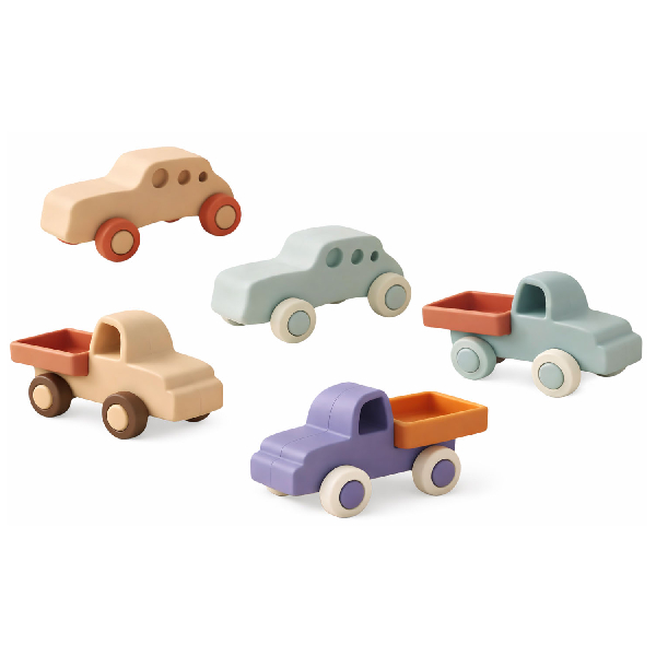 Incluye: 5 medios de transporte de goma.