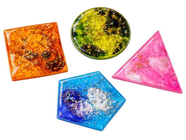 Cada figura contiene escarcha gruesa y líquido de color en su interior, generando un efecto visual dinámico al manipularlas. Son ideales para actividades educativas, terapéuticas y de relajación, fortaleciendo la percepción sensorial y la coordinación.