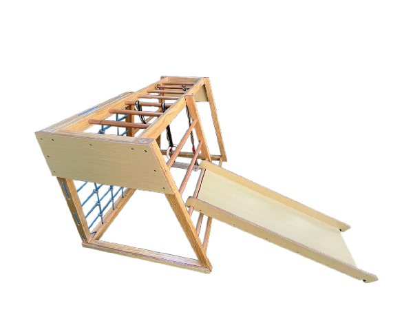 Estructura recreativa diseñada para fomentar la actividad física, el juego activo y la coordinación en espacios exteriores. Su diseño con plataforma elevada, rampa y canasta de baloncesto permite desarrollar habilidades motrices, el equilibrio y la interacción social a través de dinámicas de juego.