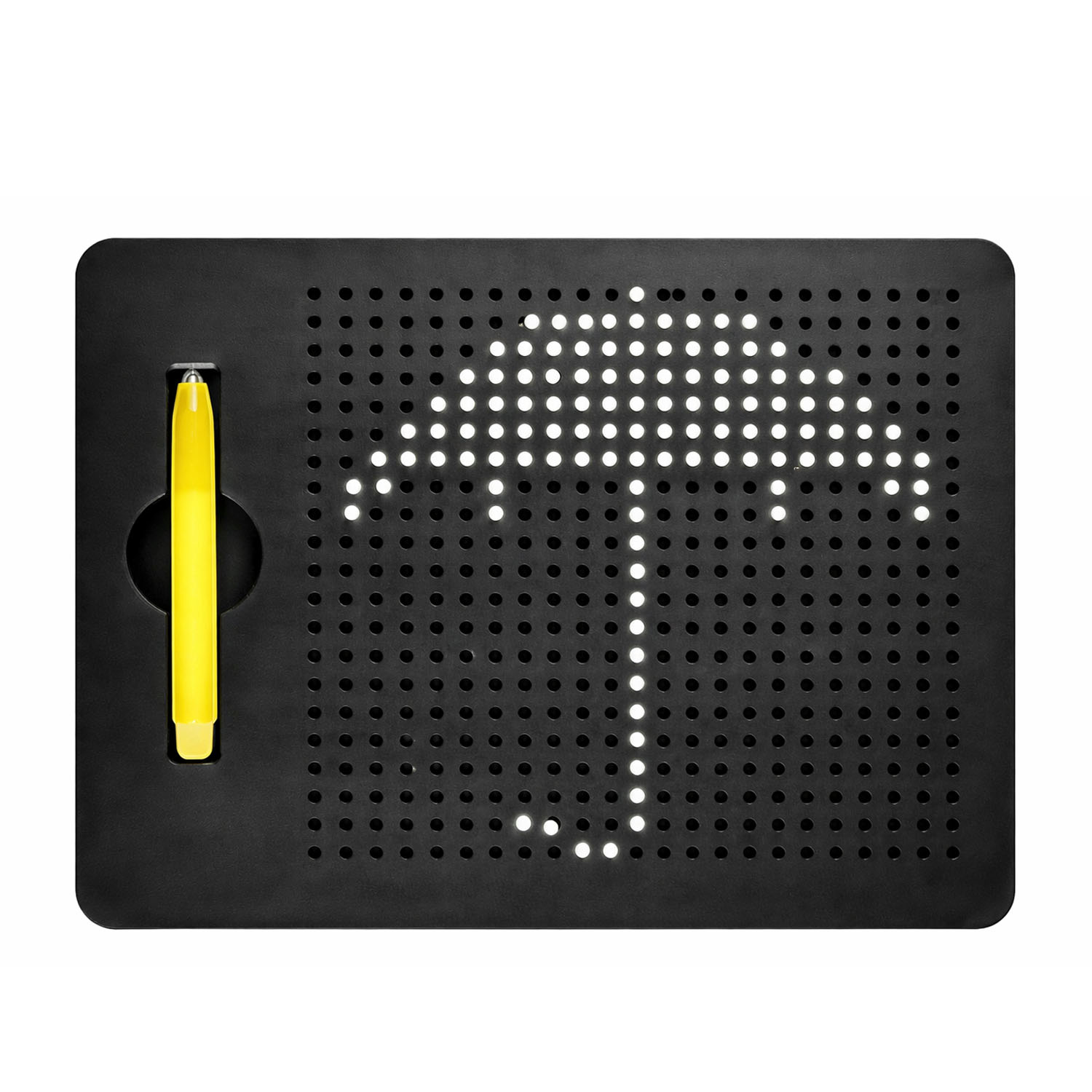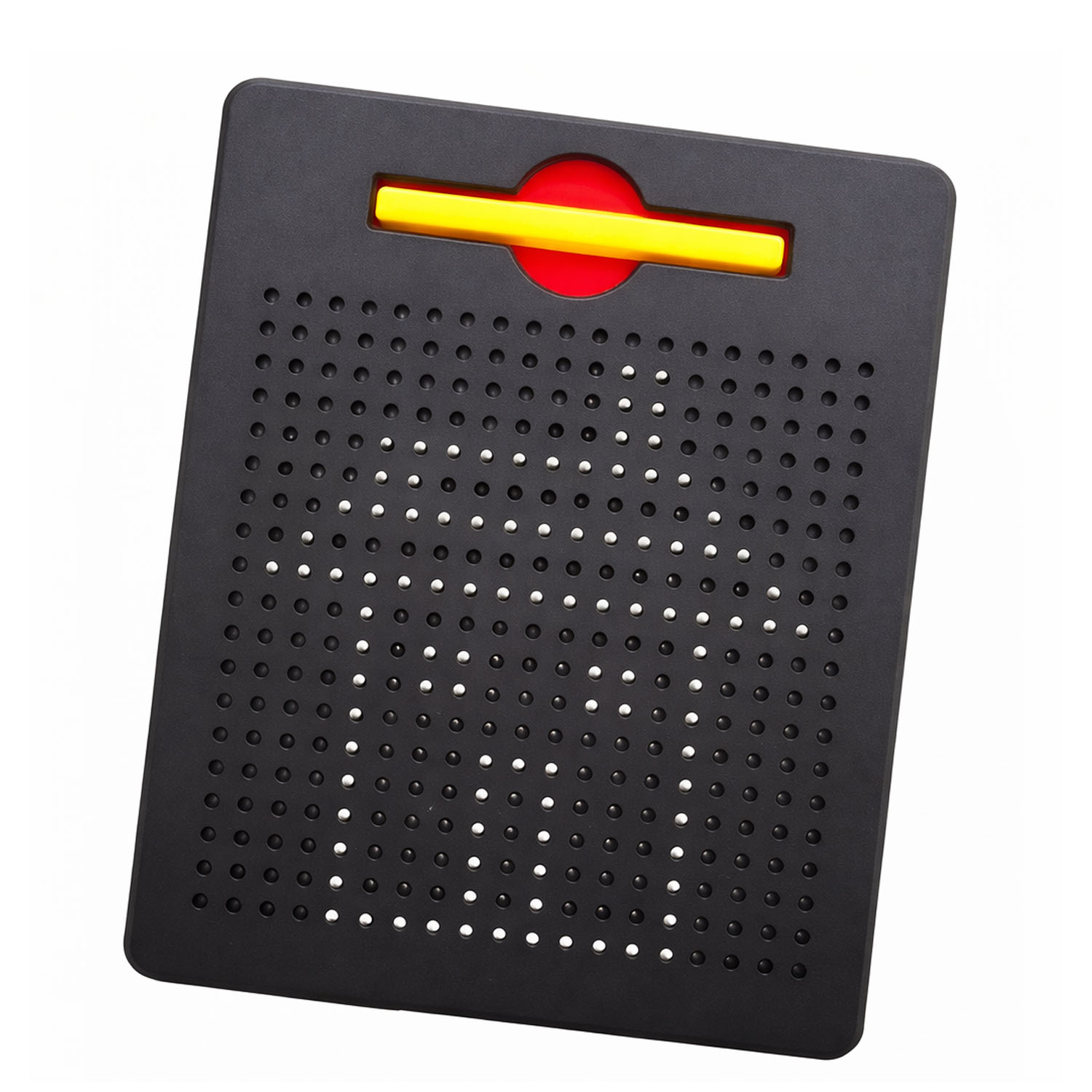 Tablero magnético diseñado para el desarrollo de la motricidad fina y la creatividad a través del dibujo. Permite a los niños formar distintas figuras utilizando un lápiz magnético que hace emerger pequeñas bolitas en la superficie, generando trazos visibles.