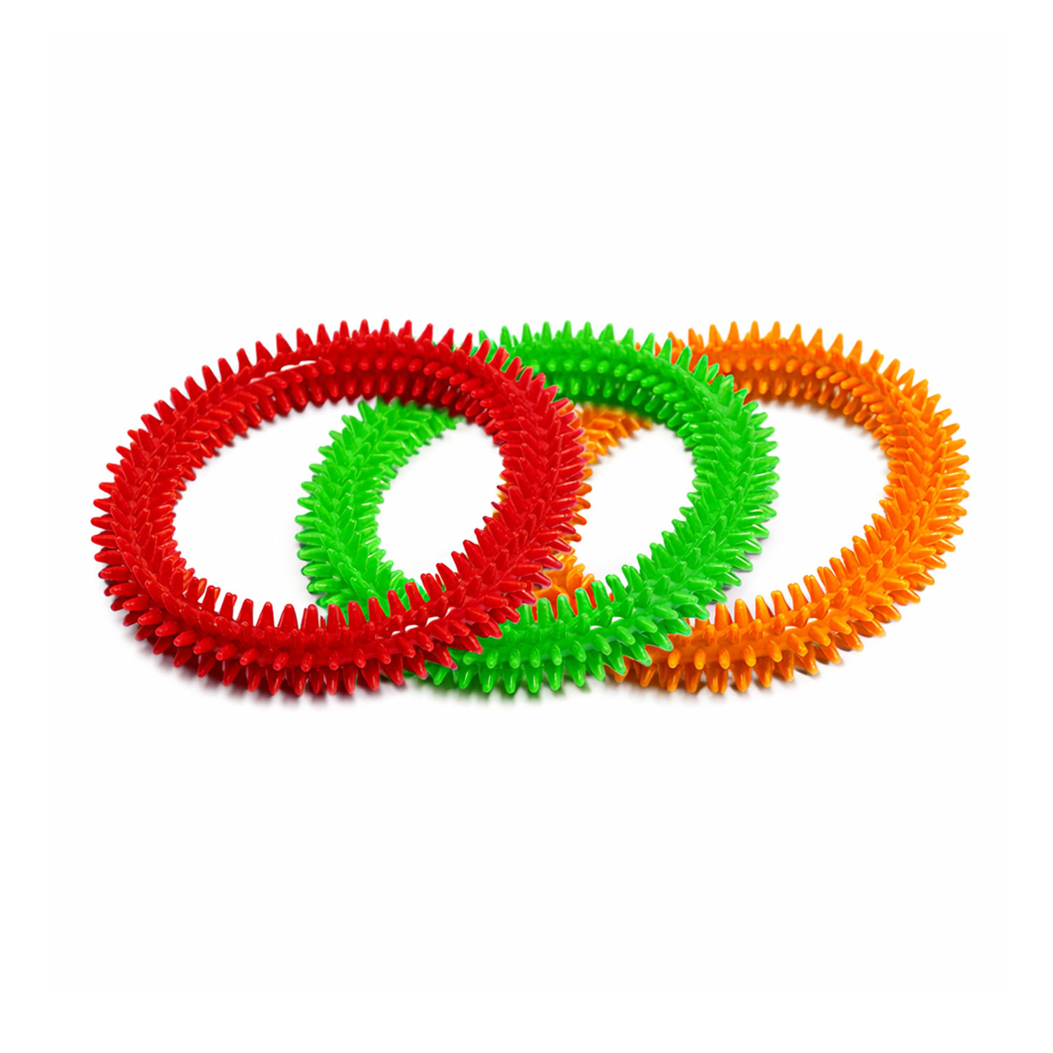 Set de anillos sensoriales diseñados para la estimulación táctil y la regulación sensorial. Su superficie con púas suaves permite generar una estimulación controlada, favoreciendo la exploración sensorial y la relajación.