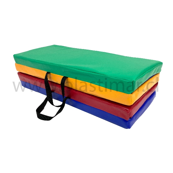 Colchoneta de educación física plegable en 4 piezas, diseñada para facilitar el traslado y el bodegaje gracias a su formato modular. Sus colores cálidos permiten crear ambientes de confort, favoreciendo el desarrollo de actividades físicas y motrices en distintos espacios.