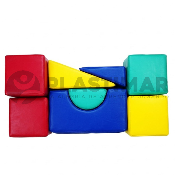 Set de ocho bloques gigantes de distintas formas y colores, diseñados para apilar y construir diversas estructuras de manera segura. Son de fácil uso, manipulación y limpieza, además de livianos y seguros. Favorecen la clasificación, codificación, identificación y asociación, estimulando el desarrollo cognitivo y motriz.