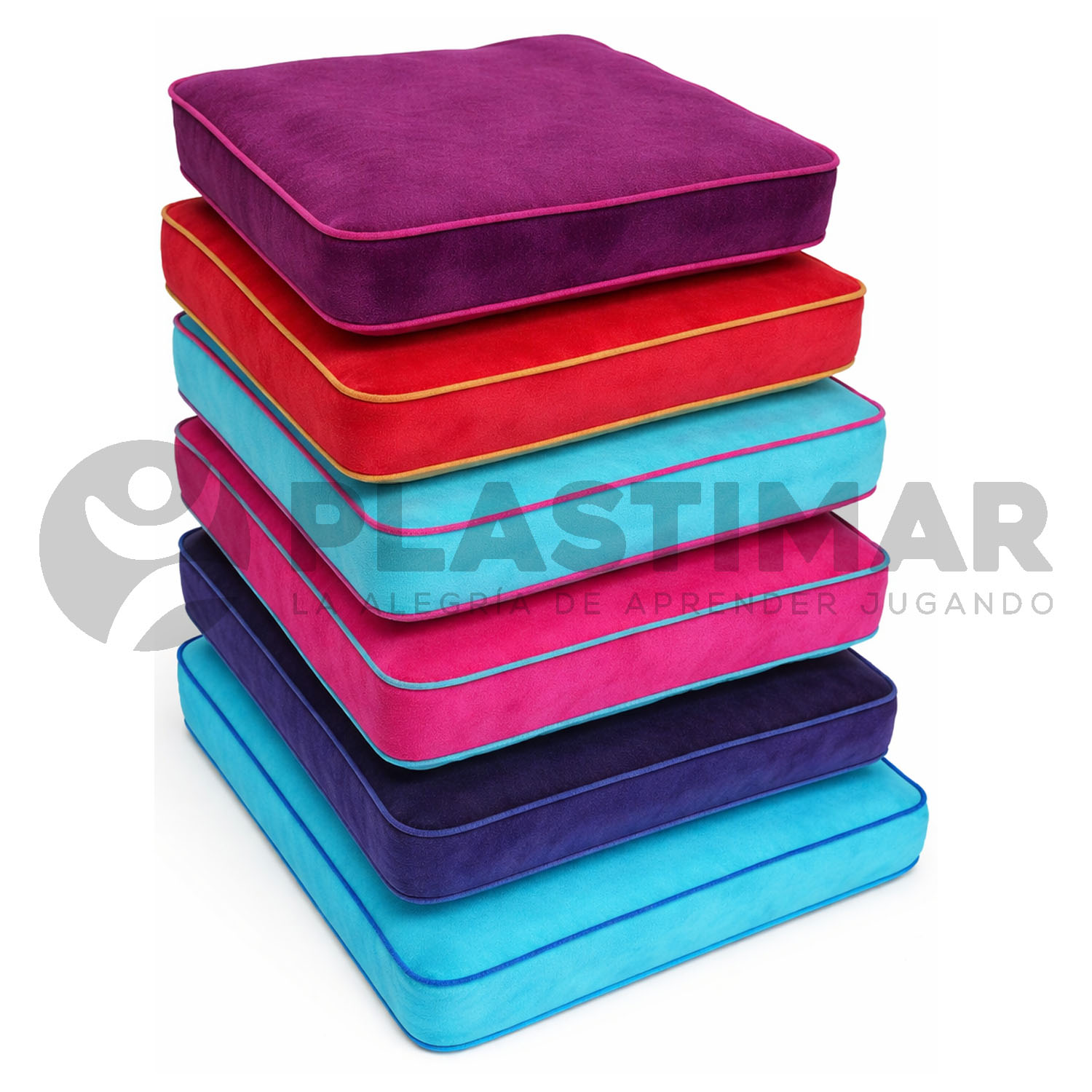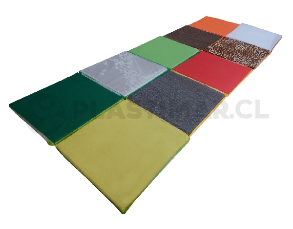 Materiales: Goma espuma de poliuretano densidad 25 kg/m³ y telas de diferentes texturas, con base en PVC resistente.