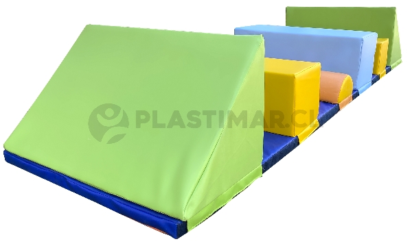 Circuito psicomotor diseñado para el desarrollo del movimiento y la coordinación en niños y niñas, orientado a favorecer la motricidad gruesa, el equilibrio y la planificación motriz en contextos educativos y recreativos. Su configuración permite actividades de desplazamiento, ascenso y superación de obstáculos mediante juego libre o guiado, en un entorno contenido y seguro.