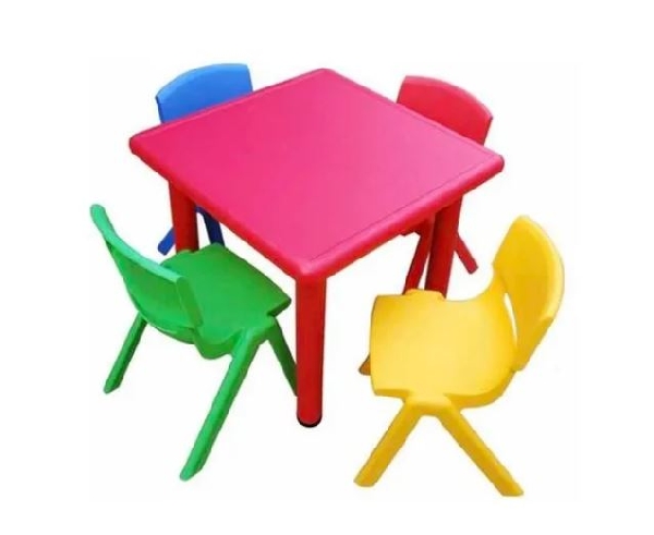 Set compuesto por: 1 Mesa cuadrada de plástico para niños, de llamativo color rojo ó azul con dimensiones: 62 x 62 x 50 cm; y 4 sillas infantiles plásticas extra resistente, ideales para cualquier espacio ya sea de estudio, juegos o entretención, medidas aprox: 51 x 34 x 40 cm. Material: plástico ultra resistente ante rayos UV, humedad y ralladuras. Uso del producto: interior y exterior. Muy fácil de armar y trasladar. Edades recomendadas: 12 meses hasta los 6 años.