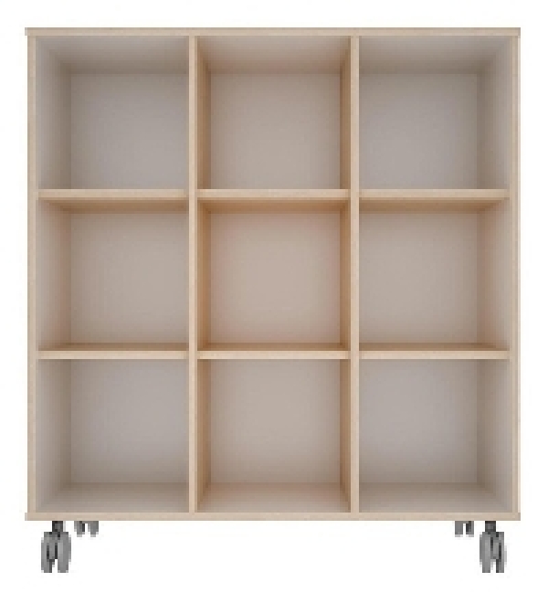 ESTANTE ESCOLAR CON RUEDAS Estante con ruedas con tres compartimentos rectangulares de 86 x 53 cm. cada uno. Su estructura de madera resistente lo hace duradero y permite almacenar desde material didáctico hasta artÃculos de escritorios, papeles, pinturas, entre otros. Las ruedas facilitan el transporte dentro del aula y el producto no incluye adminÃculos en cada compartimento. Material: Pino natural. MEDIDAS: 86 x 55 x 80 cm. No incluye accesorios.