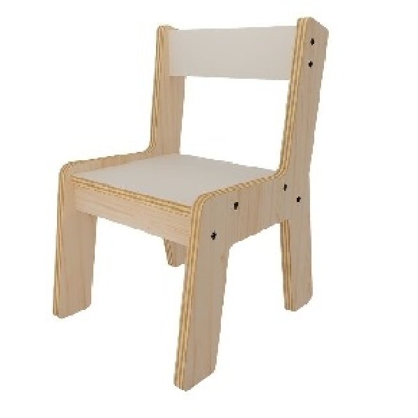 Silla adulto según nuevas normativas JUNJI de diseño y materialidad. Estructura: Laterales y Travesaño, madera terciada 18 mm de espesor. Asiento: Madera terciada 12 mm de espesor, más cubierta Formalita texturada color Blanco. Respaldo: Madera terciada 12 mm de espesor, más cubierta Formalita texturada color Blanco. Dimensiones: Ancho: 40 cm Alto Total: 80,6 cm Alto asiento: 45 cm Profundidad: 45 cm