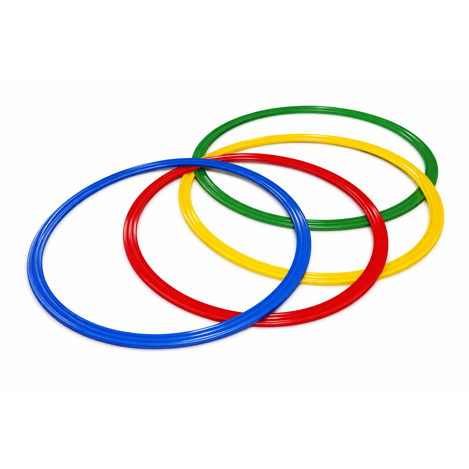 Aro de 60 cm, material plástico resistente, en colores amarillo, azul o rojo. Elemento indispensable, junto a las picas, para la realización de circuitos psicomotrices de todo tipo y para todos los niveles de dificultades.