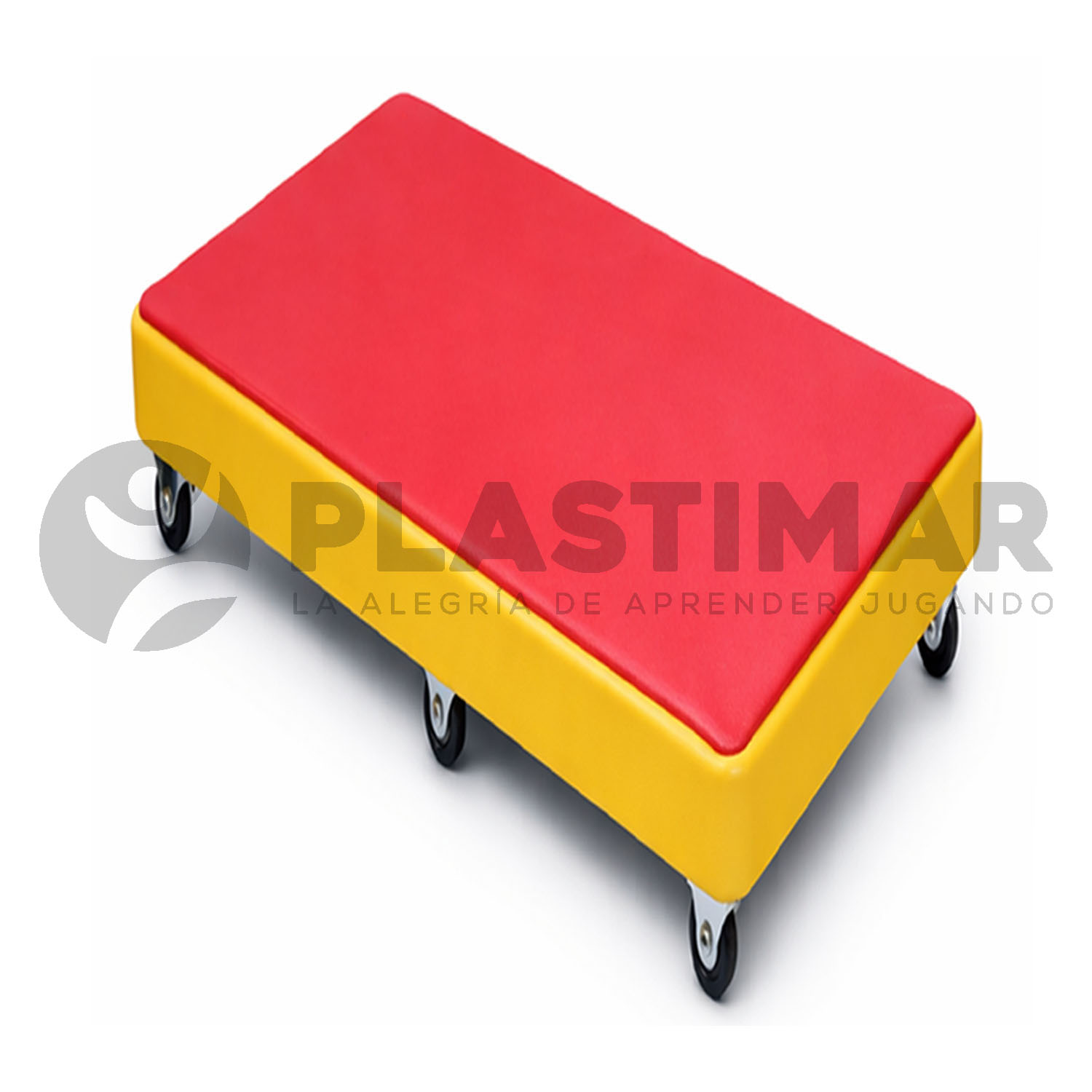 SCOOTER 6 RUEDAS (1 PIEZA) Descripción: Scooter de madera tapizada con 6 ruedas para su deslizamiento Dimensiones: 50 x 40 cm Materiales: Madera. Goma espuma densidad 25 kgr/m³ de excelente calidad. Tapiz Free Kid cuenta con nanoparticulas de cobre antibacteriano, lavable e impermeable, antiflama y atoxica, según certificación.