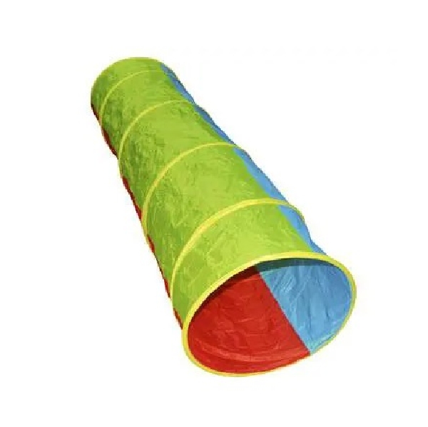 Túnel de polyester con espiral de alambre acerado flexible, plegable. Ideal para psicomotricidad infantil. Incluye funda con cierre. Medidas: 210 cm de largo x 50 cm de diámetro.