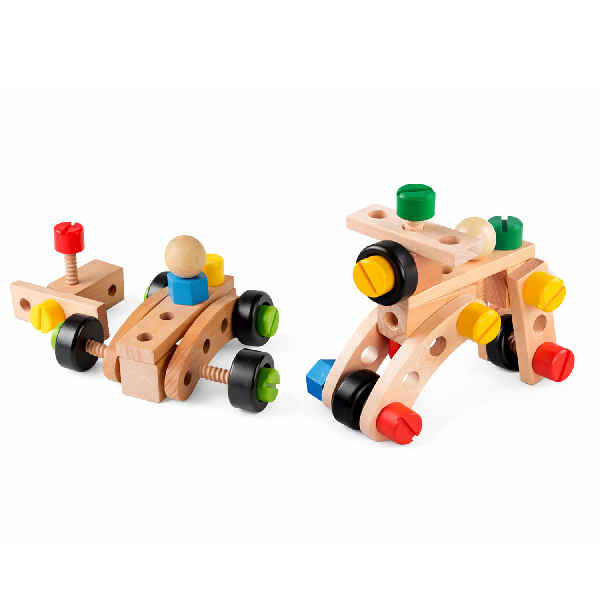 El Juego de Construcción Mecano de Madera es un recurso educativo diseñado para fomentar el juego constructivo y la exploración creativa mediante el armado de distintas estructuras. Sus piezas de madera natural pintada permiten combinar, ensamblar y crear modelos variados, favoreciendo el aprendizaje activo a través del juego libre o guiado.