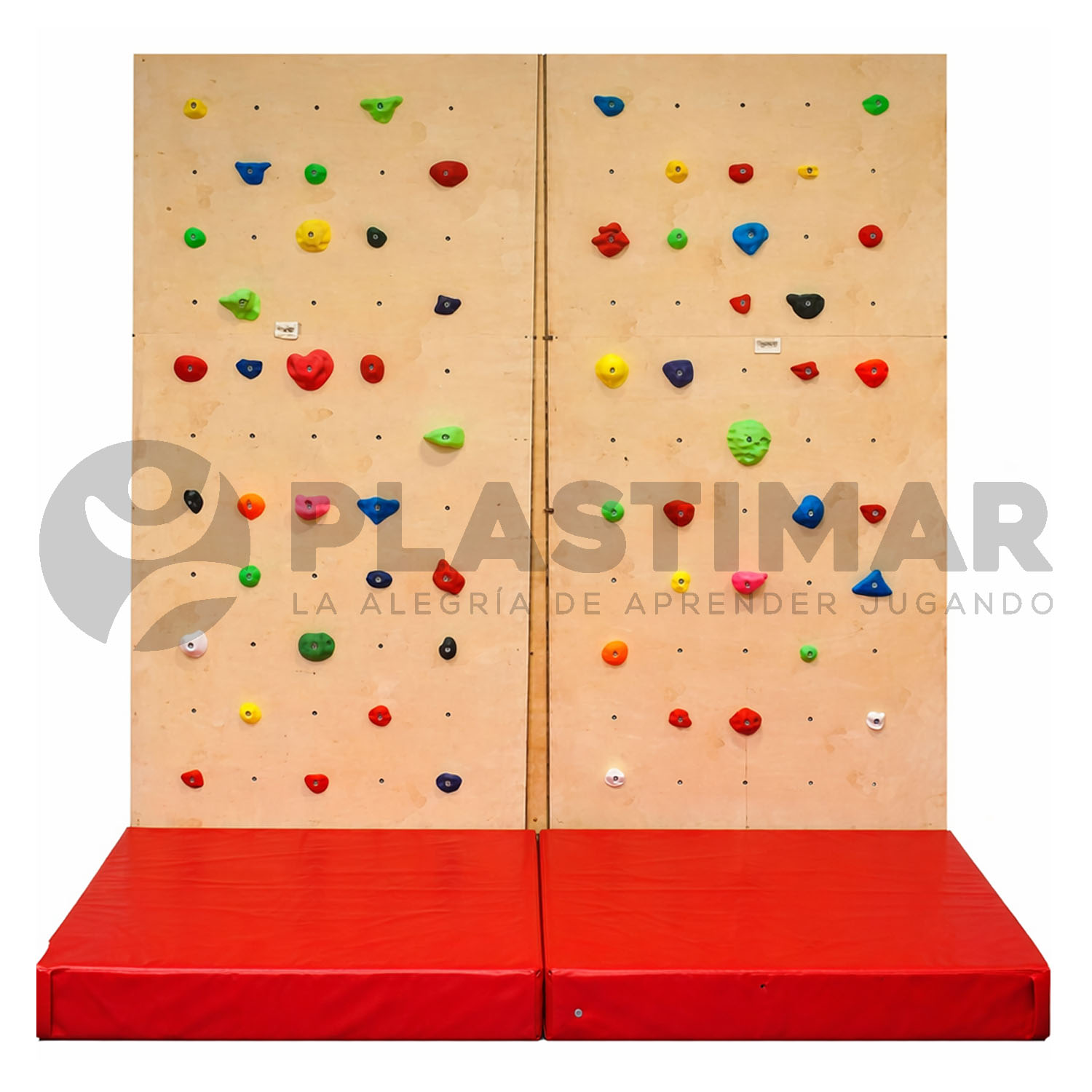 Muro de madera que permite desarrollar diversas destrezas motrices y sensoriales en niños y niñas, facilitando la coordinación, el equilibrio y la fuerza al escalar y trepar. Diseñado para promover el trabajo corporal integral en espacios educativos o terapéuticos. Requiere fijación directa a una pared estructural. Incluye colchonetas para amortiguar posibles caídas.