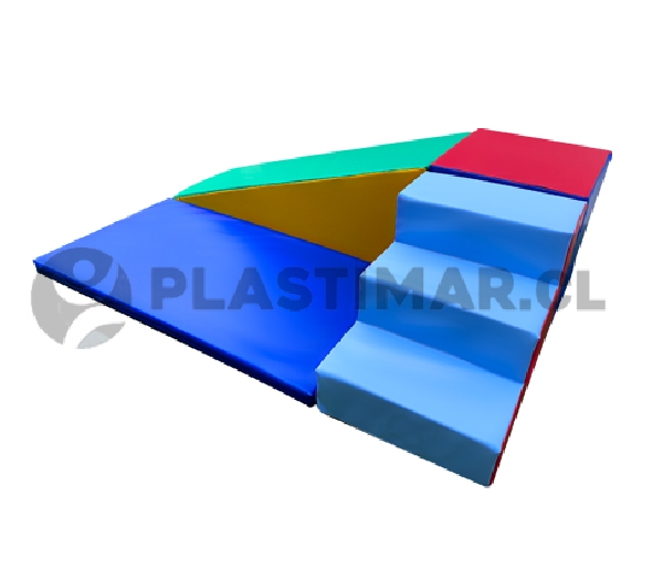 Juego modular diseñado para actividades de movimiento y exploración corporal en espacios interiores, orientado a favorecer la motricidad gruesa, la coordinación y el equilibrio en niños y niñas. Su configuración permite crear recorridos de ascenso, descenso y desplazamiento, promoviendo el juego libre o guiado en un entorno contenido y seguro.
