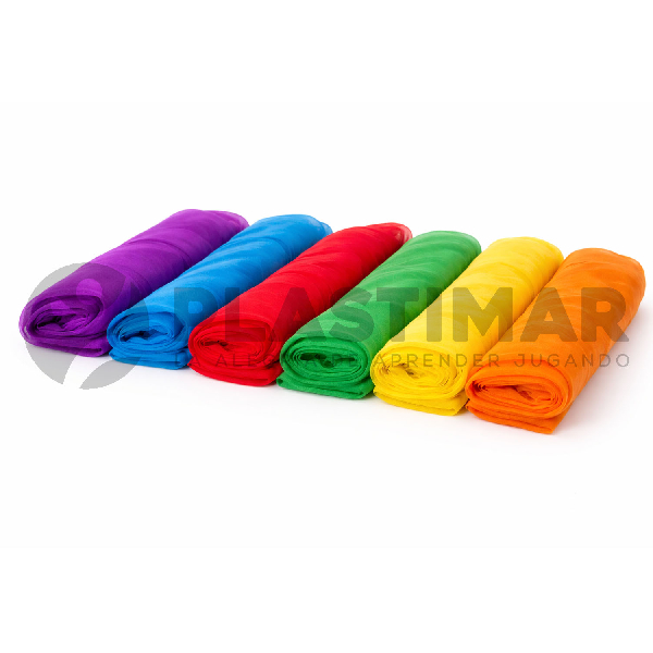 Set de 7 trozos grandes de gasa en diferentes colores, ideales para trabajar artes manuales, recortar, crear, pegar y realizar diversas creaciones artísticas. Favorece la creatividad, la expresión y el desarrollo de habilidades manuales en actividades educativas y recreativas.