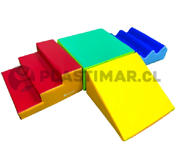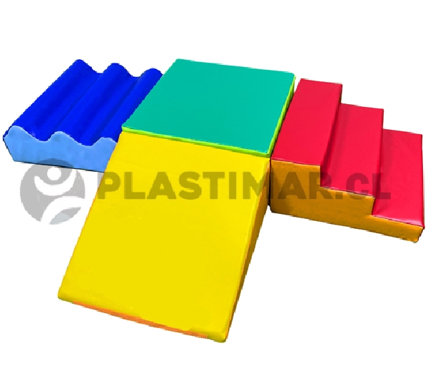Adecuado para contextos educativos y terapéuticos, contribuyendo al desarrollo de la motricidad gruesa, la coordinación y la orientación espacial. Las piezas se adhieren entre sí mediante velcros, otorgando estabilidad y facilitando actividades de juego guiado o libre.