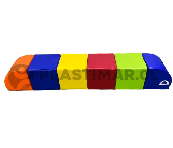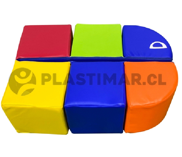 1 asiento cuncuna compuesto por 6 módulos cuadrados unidos entre sí.