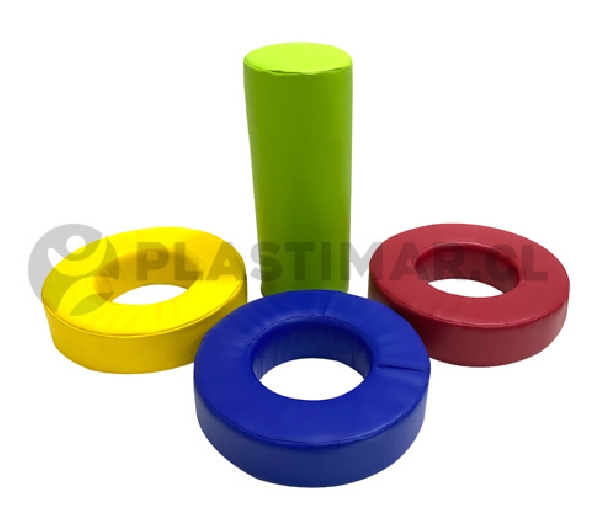 Este material es adecuado para contextos educativos y terapéuticos, ya que facilita propuestas orientadas al equilibrio, la planificación motriz y la interacción con volúmenes. La combinación del cilindro con los anillos promueve la exploración activa y el fortalecimiento de habilidades motrices básicas.