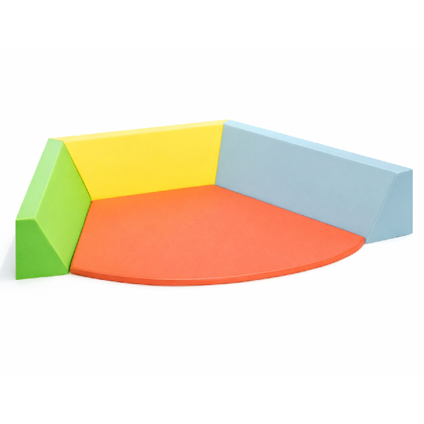 Juego de patio compuesto por módulos que, unidos, forman un recinto de juego con paredes en ángulo, permitiendo que el niño se desenvuelva con libertad, pudiendo ver y ser visto. Incorpora colchoneta base en espuma y laterales consistentes y rígidos, unidos mediante sistema de velcros para mayor sujeción y estabilidad.