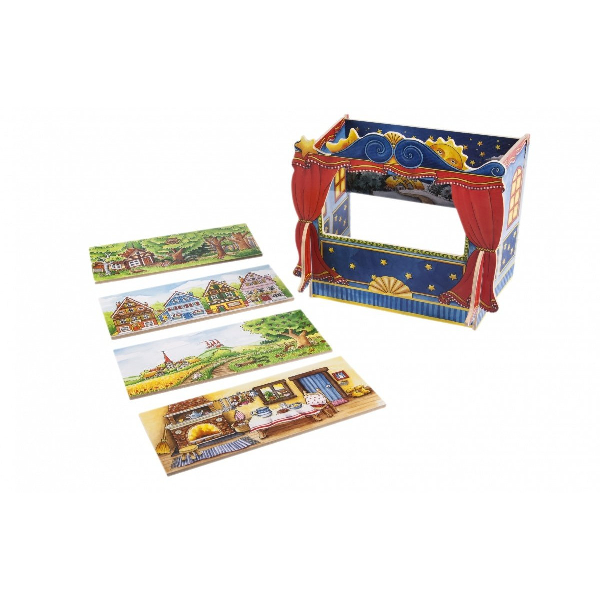 El Teatro de Títeres para Dedos de Madera es un recurso educativo diseñado para estimular la creatividad y la expresión a través del juego simbólico. Su estructura de madera pintada, con distintos escenarios intercambiables, permite a niños y niñas crear historias, representar personajes y desarrollar narraciones de forma lúdica.