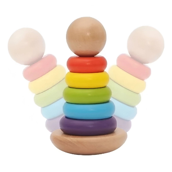 La Torre Móvil Apilable y de Encaje es un juguete educativo de madera diseñado para estimular el juego activo y el aprendizaje temprano. Su base con movimiento y su cabeza sonriente invitan al niño a interactuar, apilar y encajar piezas, manteniendo el interés por largos periodos de juego.