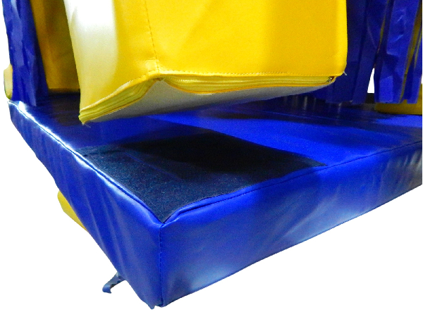 Este material es adecuado para contextos educativos y recreativos, ya que contribuye al desarrollo de la motricidad gruesa, la orientación espacial y la interacción social. La colchoneta base proporciona amortiguación y seguridad, mientras que los pilares y el techo estructuran un espacio lúdico que estimula el juego libre o guiado.