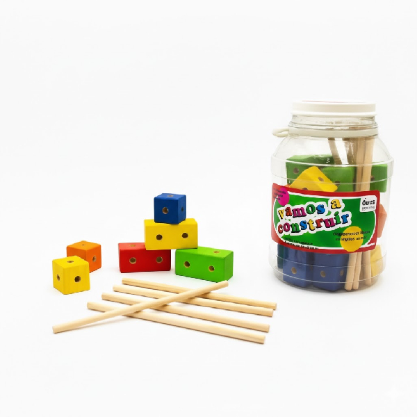 El Set de Bloques de Construcción es un recurso pedagógico diseñado para fortalecer el desarrollo de la motricidad fina y la coordinación visomotora mediante el apilado y ensamblaje de sus elementos. A través de la manipulación de palos y bloques, los niños ejercitan el pensamiento lógico-matemático al explorar conceptos de equilibrio, clasificación por formas y seriación de colores.